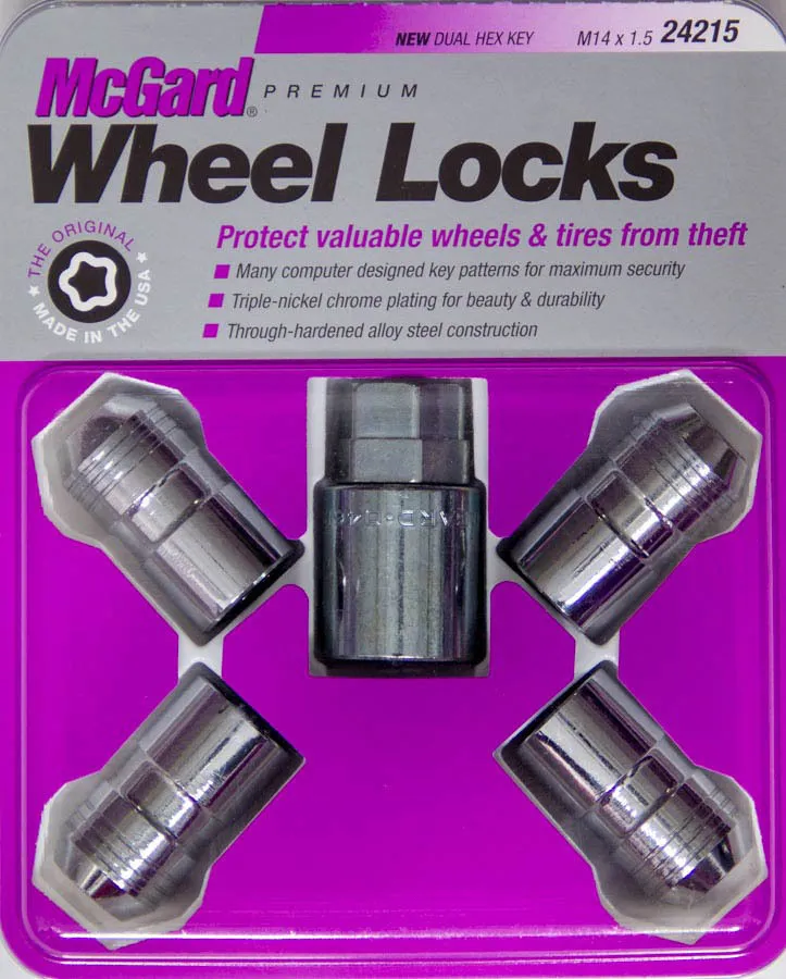 Wheel Lock – Premium – 14 mm x 1.50 Thread – Cone Seat – Closed End – Key Included – Steel – Chrome – Set of 4