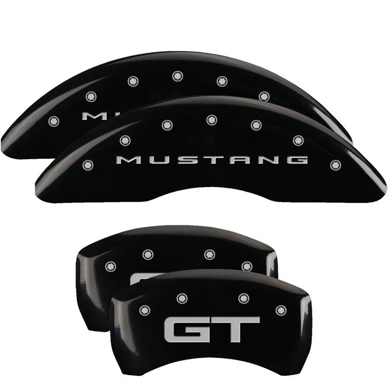 Brake Caliper Cover – Mustang Script Front Logo – GT Script Rear Logo – Aluminum – Black Powder Coat – 18 in Minimum Wheel Diameter – Ford Mustang 2015-17 – Set of 4