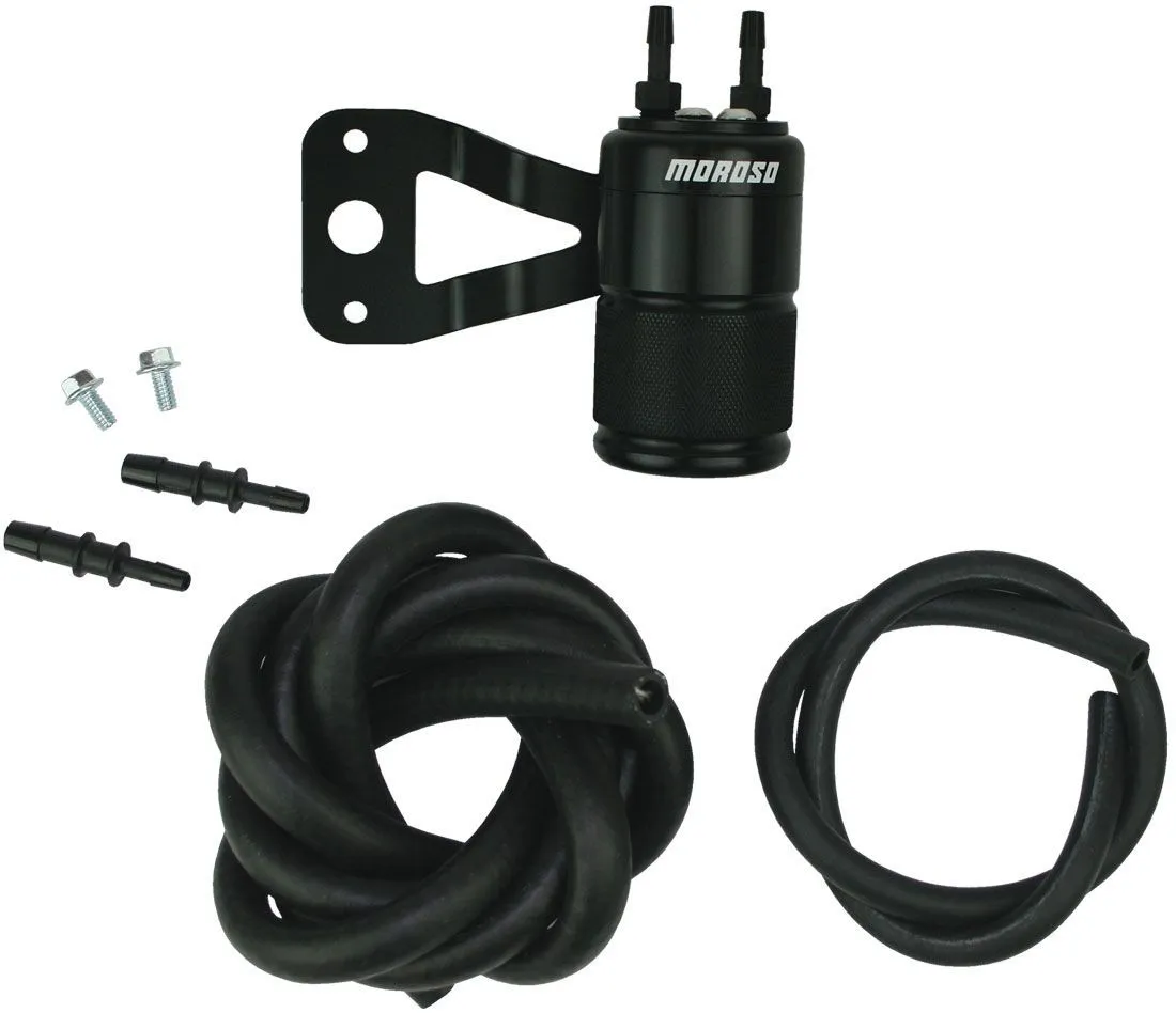 Air-Oil Separator – 2.25 in Diameter – 3.63 in Tall – 3/8 in Hose Barb Inlet – 3/8 in Hose Barb Outlet – Screw-On Canister / Fittings / Hose Included – Aluminum – Black Anodized – Harley Davidson Twin Cam Sportster – Kit