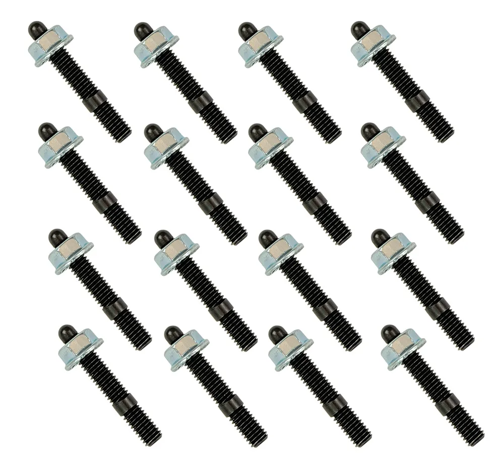 Oil Pan Stud – Serrated Face Nuts – 6 mm x 1.00 Thread – 40 mm Length – Steel – Zinc Plated – Ford Coyote – Set of 16