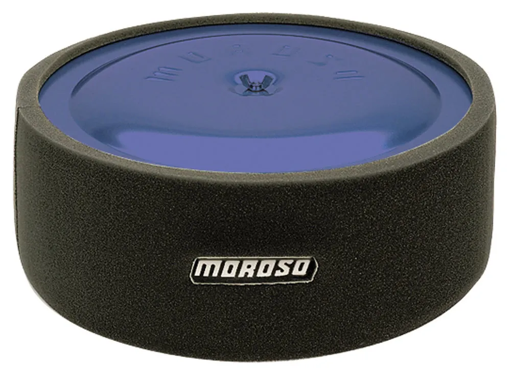 Air Filter Wrap – Reusable – Round – 14 in Diameter – 5 in Tall – Moroso Logo – Foam – Black – Each