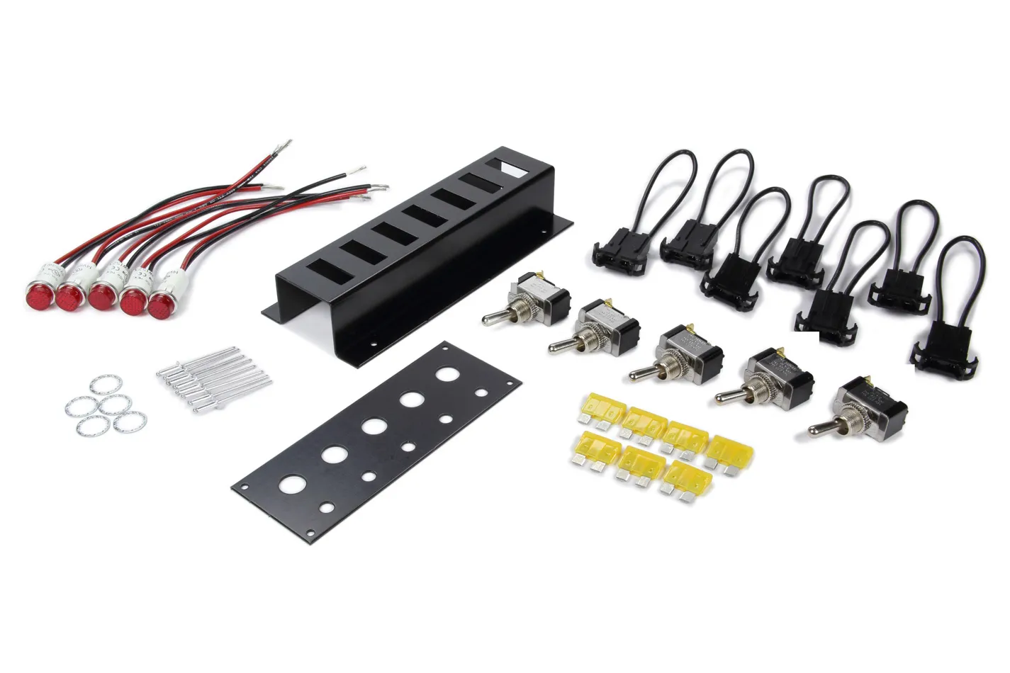 Switch Panel – Dash Mount – 5.5 x 2 in – 5 Toggles – Fused – Indicator Lights – Black – Kit