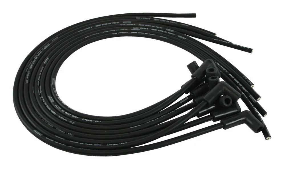 Spark Plug Wire Set – Ultra 40 – Spiral Core – 8.65 mm – Black – 90 Degree Plug Boots – HEI / Socket Style – Cut-To-Fit – V8 – Kit