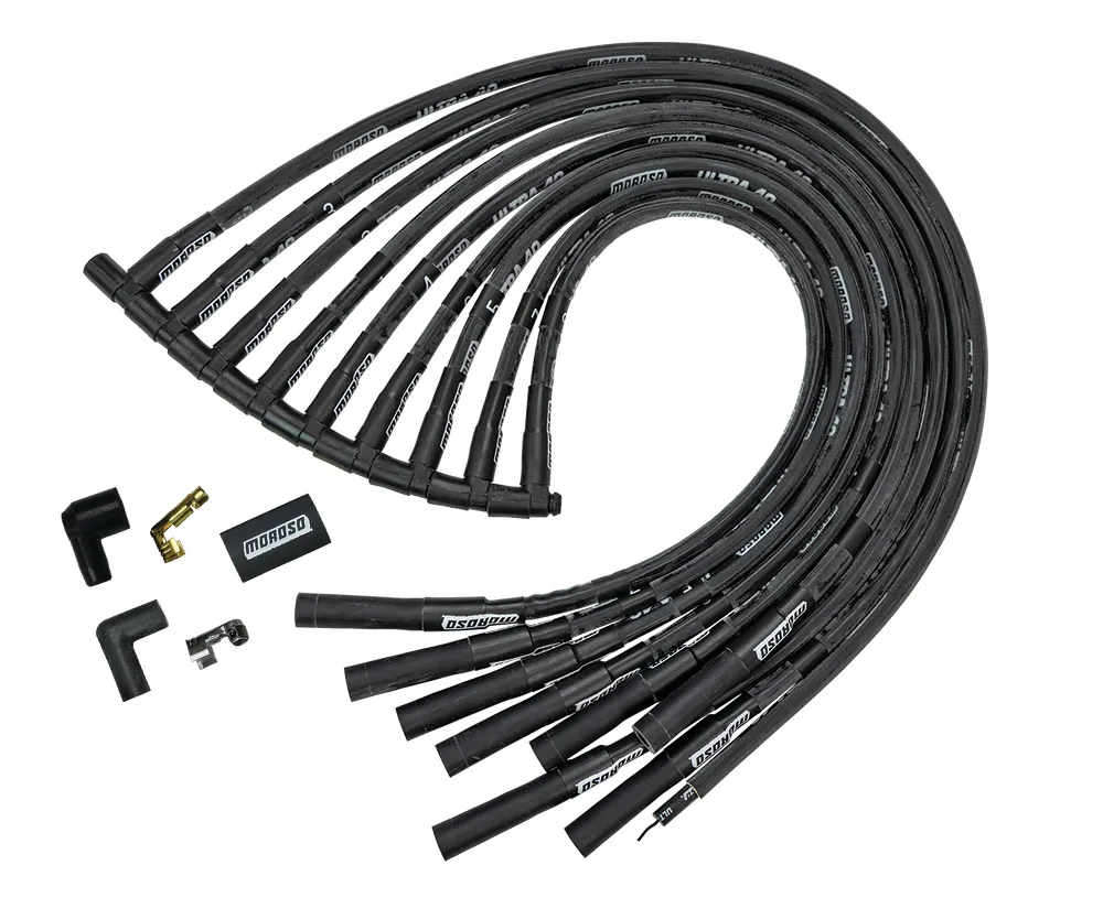 Spark Plug Wire Set – Ultra 40 – Spiral Core – 8.65 mm – Sleeved – Black – Straight Plug Boots – HEI Style Terminal – Over Valve Cover – Big Block Chevy – Kit