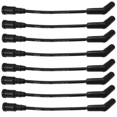 Spark Plug Wire Set – Ultra – Spiral Core – 8 mm – Black – 135 Degree Plug Boots – Socket Style – Ford Godzilla – Kit
