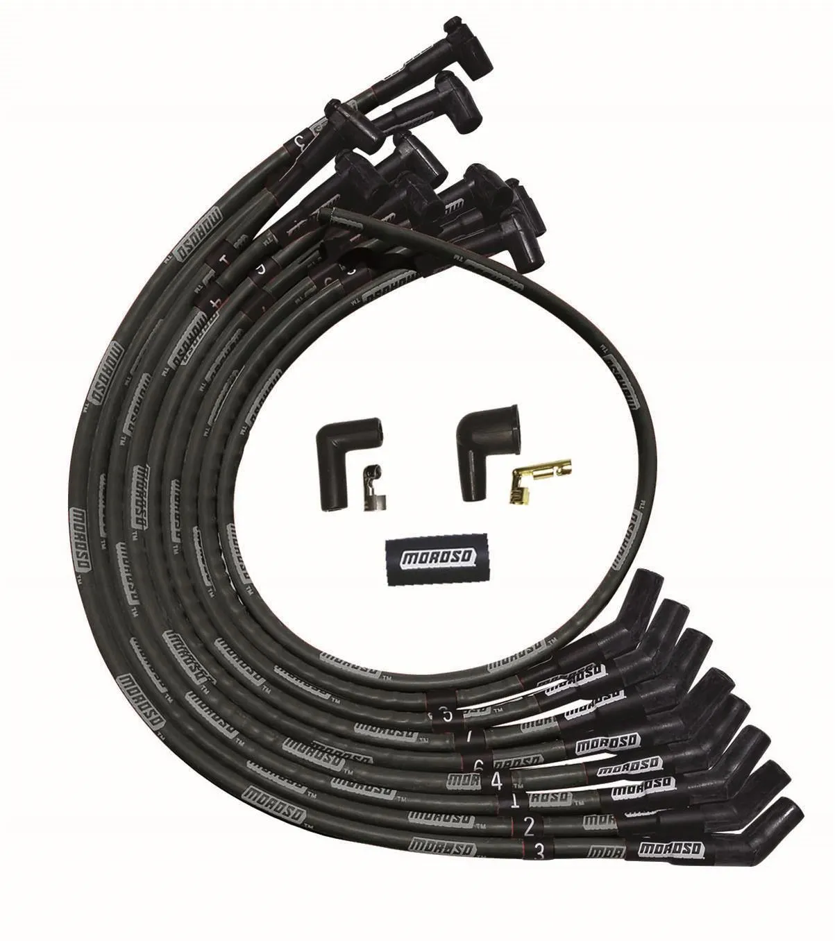 Spark Plug Wire Set – Ultra – Spiral Core – 8 mm – Sleeved – Black – 135 Degree Plug Boots – HEI Style Terminal – Over The Valve Cover – Small Block Chevy – Kit