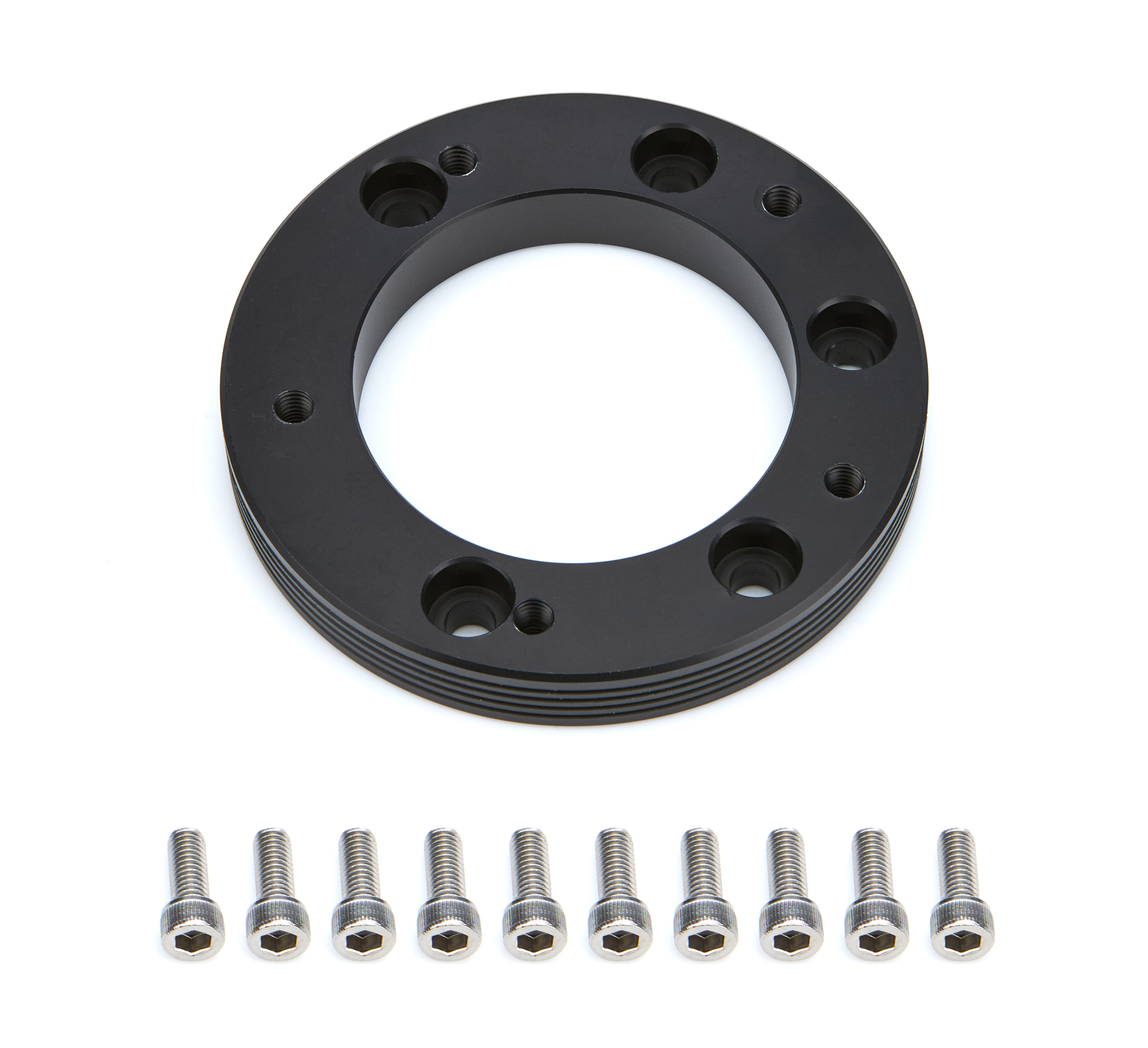 Steering Wheel Adapter – 5-Bolt Wheel to 6-Bolt Quick Release Hub – Hardware Included – Aluminum – Black Anodized – Each