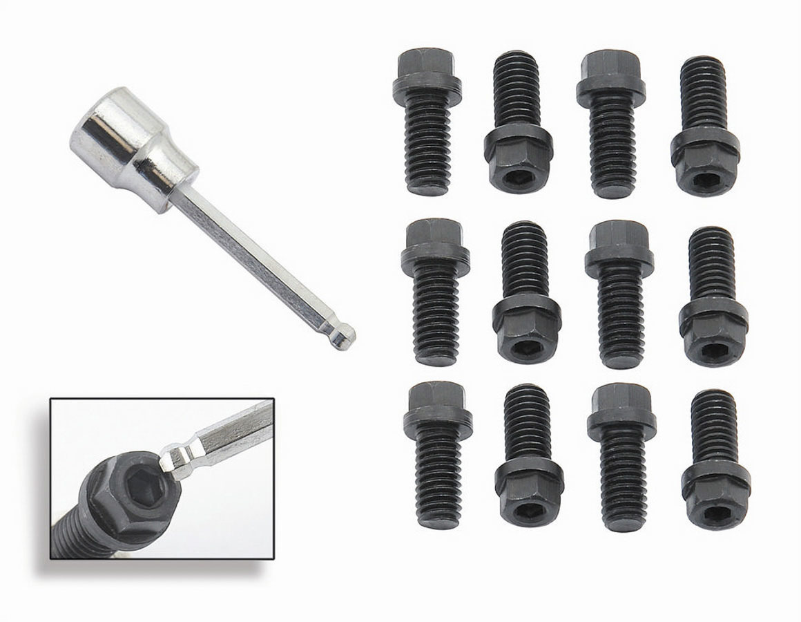 Header Bolt – 3/8-16 in Thread – 0.75 in Long – Hex / Allen Head – Steel – Black Oxide – AMC V8 / GM V8 / Mopar B / RB-Series – Set of 12