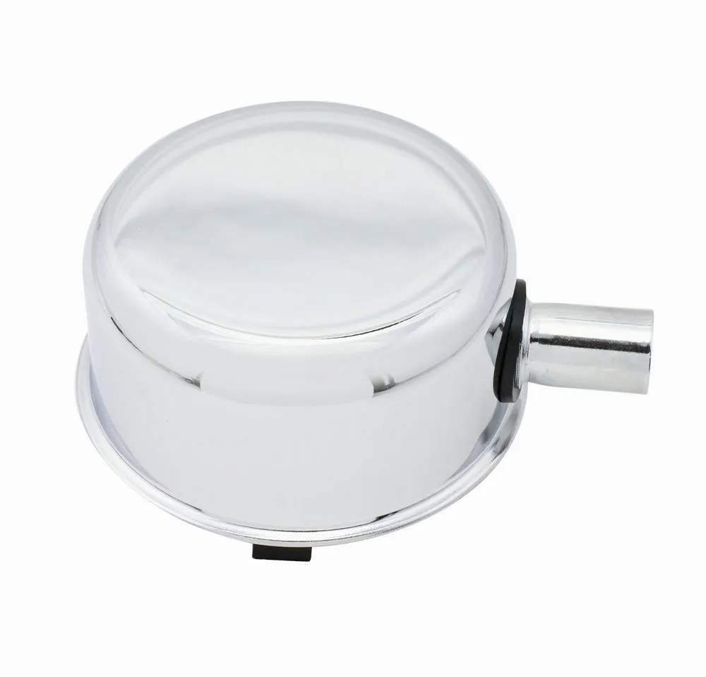 Breather – Push-On – Round – 5/8 in Hose Evacuation Fitting – Steel – Chrome – Factory Oil Filler Tubes – Each