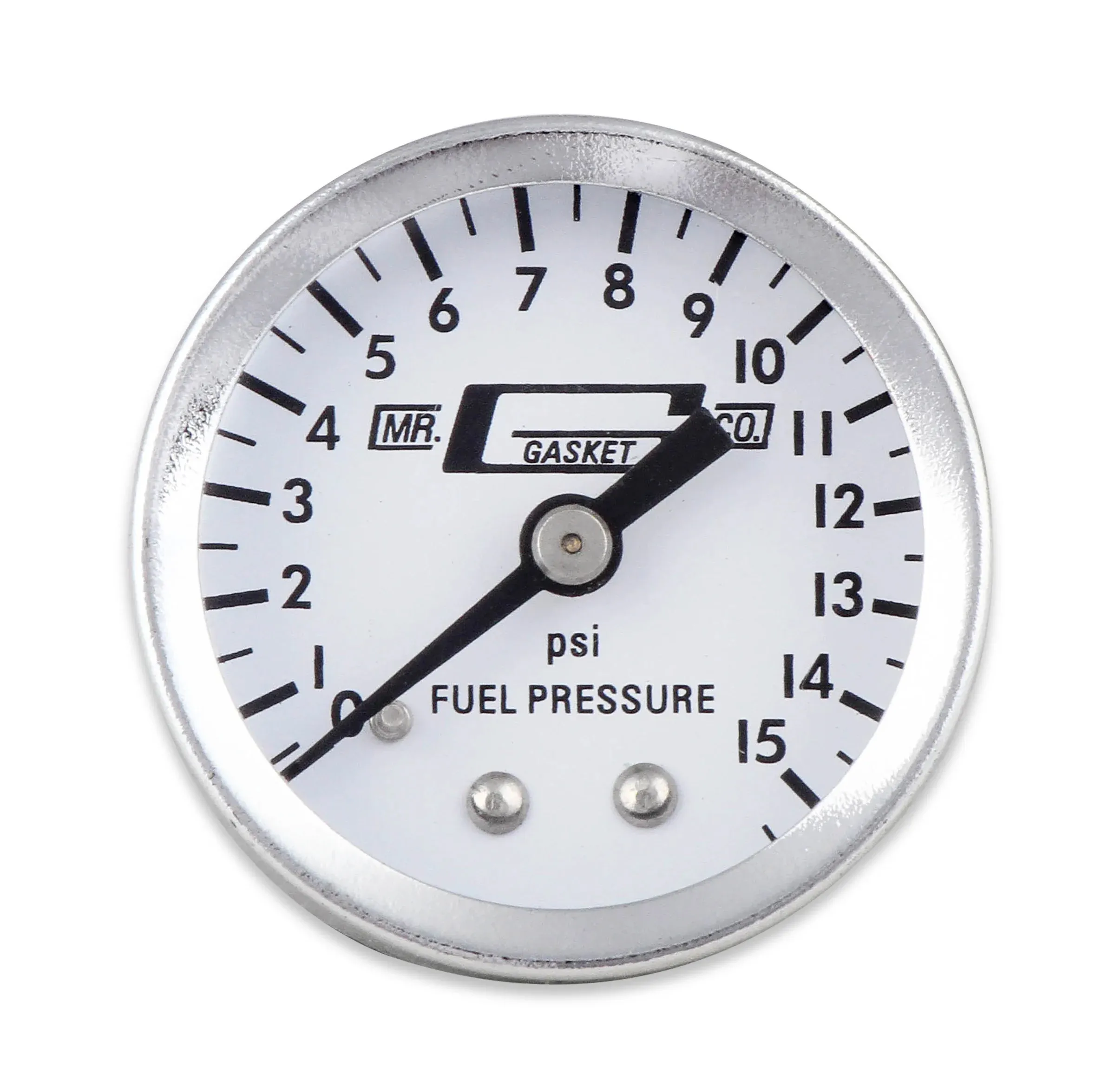 Fuel Pressure Gauge – 0-15 psi – Mechanical – Analog – Full Sweep – 1-1/2 in Diameter – 1/8 in NPT Port – White Face – Each