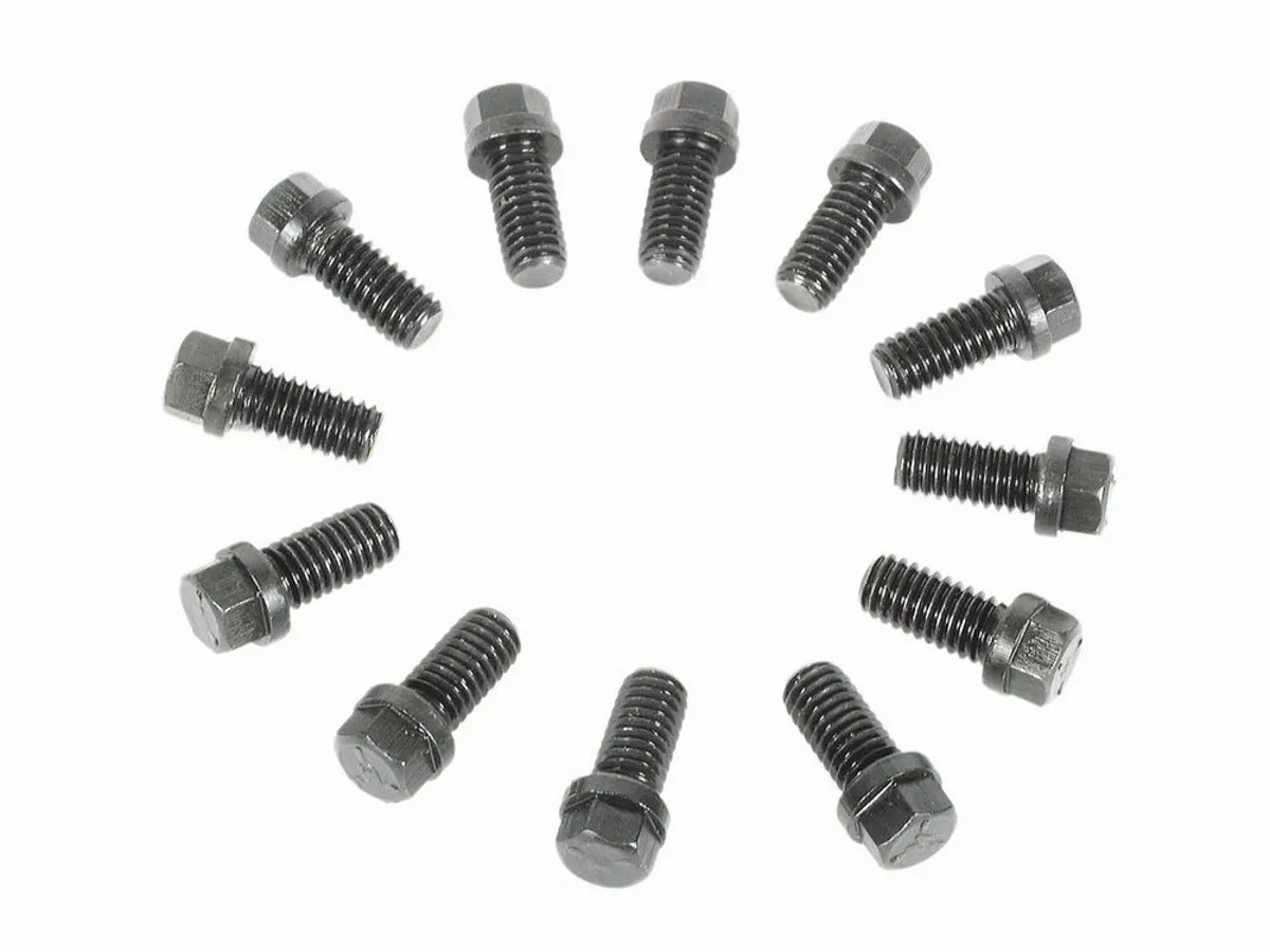 Header Bolt – 3/8-16 in Thread – 0.75 in Long – Hex Head – Steel – Black Oxide – AMC V8 / GM V8 / Mopar B / RB-Series – Set of 12