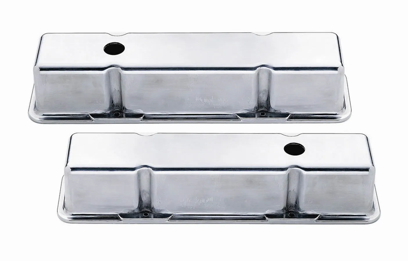 Valve Cover – Tall – Baffled – Breather Hole – Cast Aluminum – Polished – Small Block Chevy – Kit