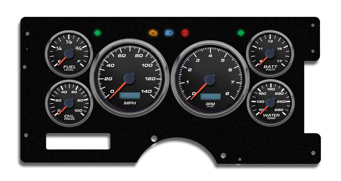 Gauge Kit – Performance II – Analog – Fuel Level / Oil Pressure / Water Temperature / Voltmeter / Tachometer / Speedometer – Black Face – GM Fullsize Truck 1988-94 – Kit