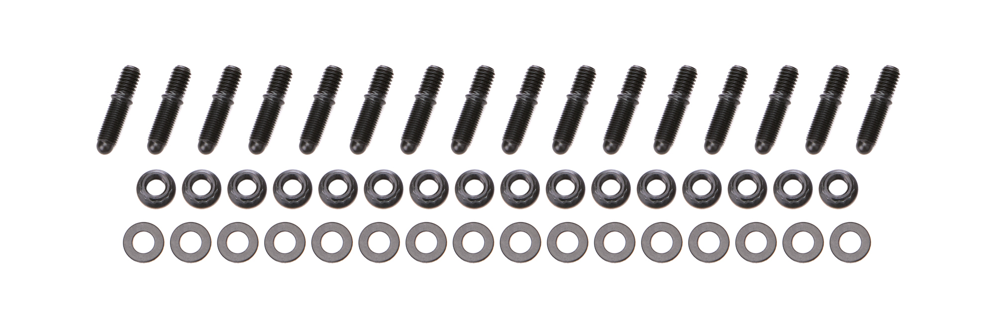 Header Stud – 3/8-16 and 3/8-24 in Thread – 1.670 in Long – Nuts Included – Broached – Steel – Black Oxide – Big Block Chevy – Set of 16