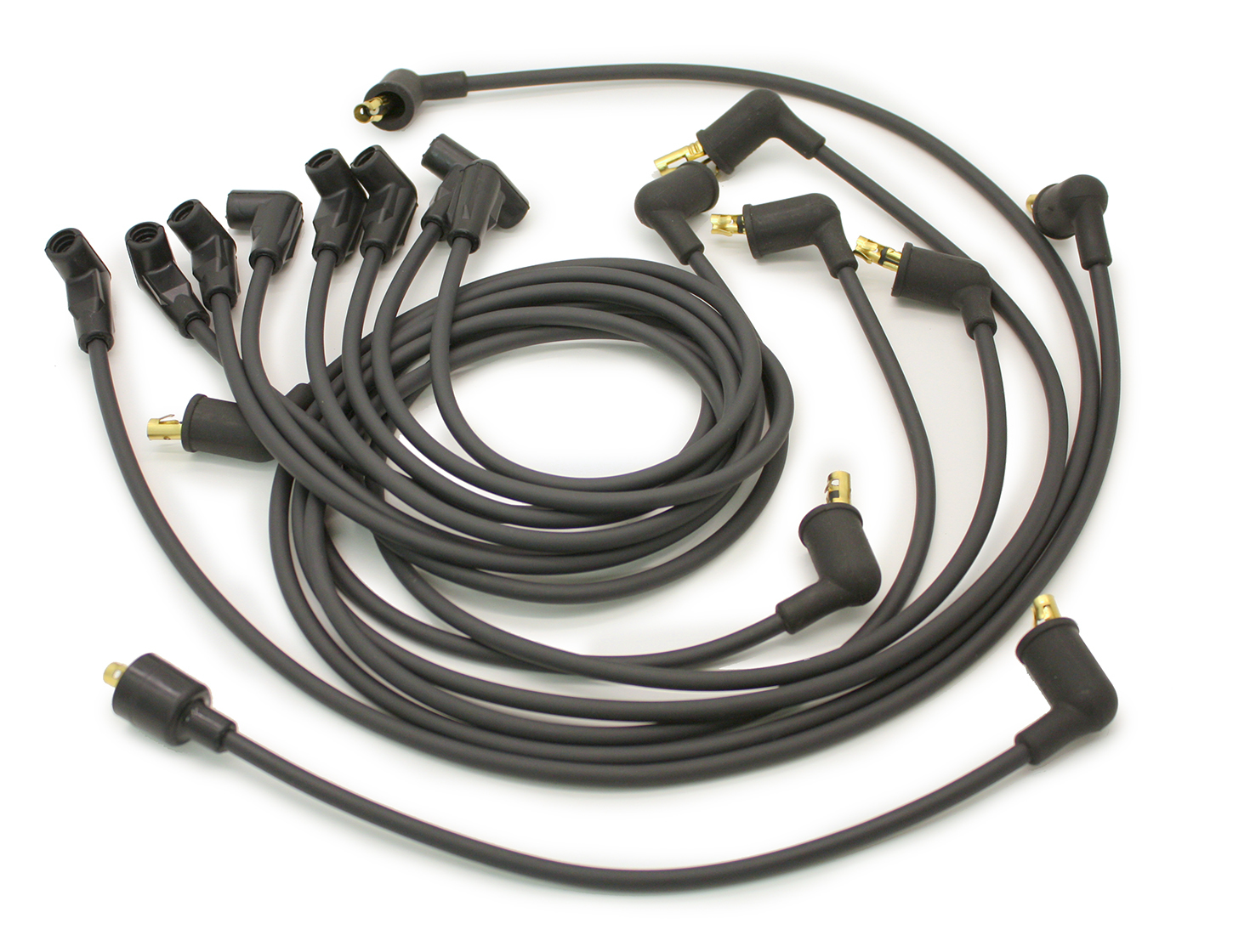 Spark Plug Wire Set – Stock-Look – Spiral Core – 7 mm – Black – 90 Degree Plug Boots – Socket Style – Mopar V8 – Kit