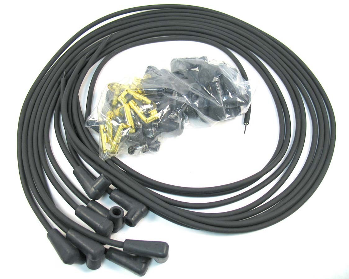 Spark Plug Wire Set – Stock-Look – Spiral Core – 7 mm – Black – 90 Degree Plug Boots – Socket Style – Universal 8-Cylinder – Kit