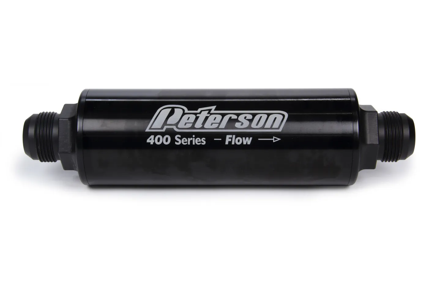Oil Filter – 400 Series – In-Line – 75 Micron Stainless Screen – 16 AN Male Inlet – 16 AN Male Outlet – Aluminum – Black Anodized – Each