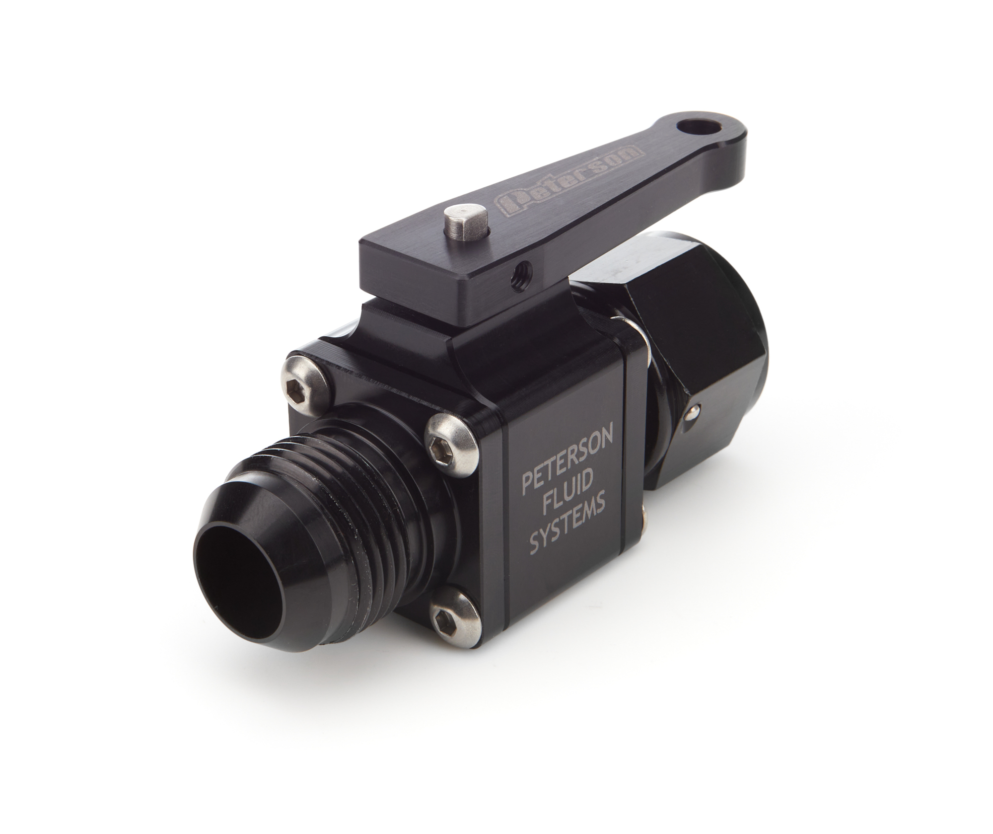 Shut Off Valve – Manual – Large Body – 12 AN Male to 12 AN Female – Aluminum – Black Anodized – Each