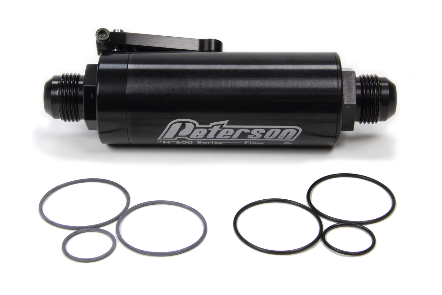 Fuel Filter – 600 Series – In-Line – 100 Micron – Stainless Element – 12 AN Male Inlet – 12 AN Male Outlet – Shut Off Valve – Aluminum – Black Anodized – Each