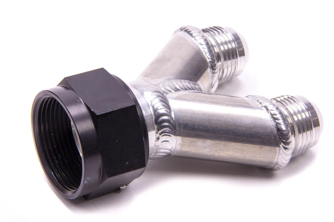 Fitting – Y Block – 20 AN Female Swivel Inlet – Dual 12 AN Male Outlets – Aluminum – Natural – Each