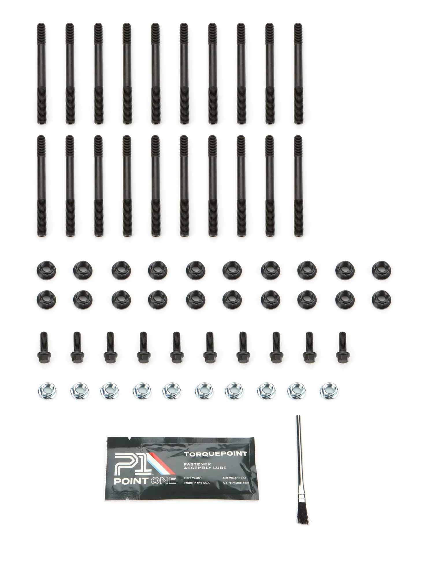 Point One Fasteners are engineered to be among the strongest, most durable fasteners available on the market. Designed and produced in Point One's Missouri state-of-the-art facility, each fastener uses premium alloys and special finishing processes to ensure best-in-class strength. Point One offers a variety of stud kits for Chevy and Ford engines, as well as select Honda and Dodge applications.