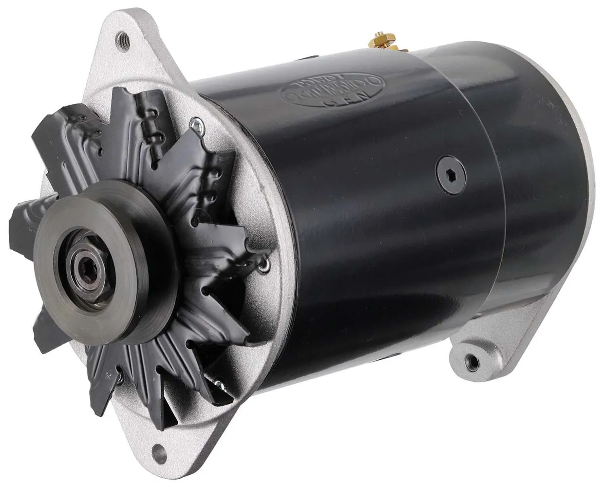 Alternator – PowerGEN – Long – 90 amps – 12V – 1-Wire – Single V-Belt Pulley – Aluminum Case – Black Powder Coat – GM – Each