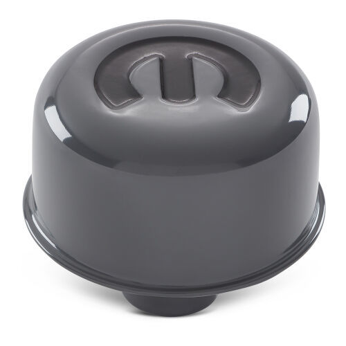 Breather – Push-In – Round – 1.22 in Hole – Omega M Logo – Steel – Gray Paint – Each
