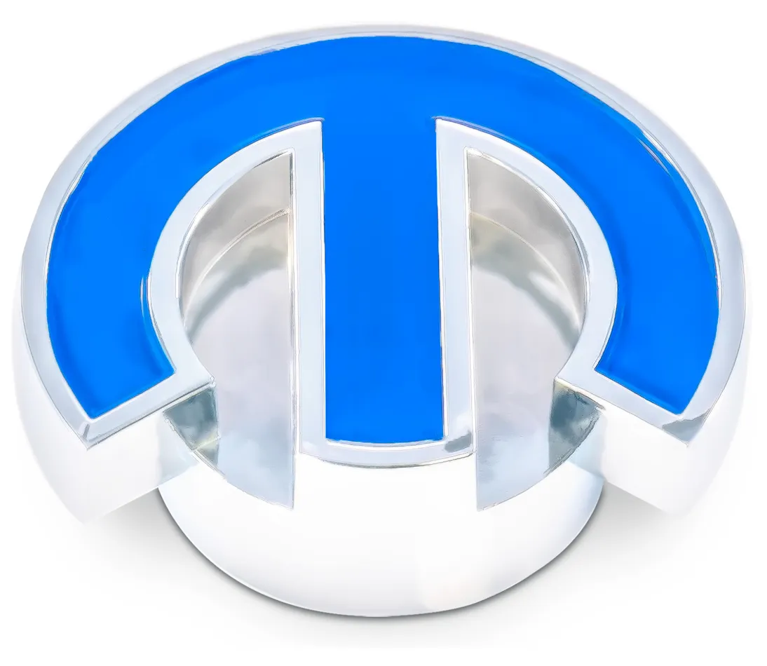 Air Cleaner Nut – Large – 1/4-20 in and 5/16-18 in Thread – Blue Mopar Omega Logo – Aluminum – Chrome – Each