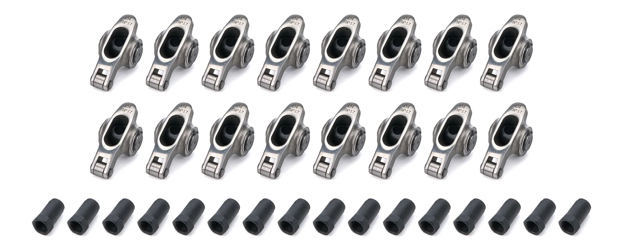 Rocker Arm – Platinum Pro Series – 7/16 in Stud Mount – 1.70 Ratio – Full Roller – Stainless – Natural – Big Block Chevy – Set of 16