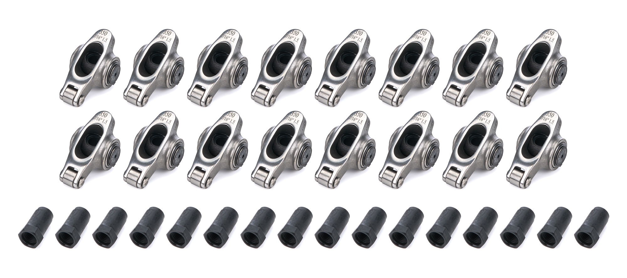 Rocker Arm – Platinum Pro Series – 7/16 in Stud Mount – 1.50 Ratio – Full Roller – Stainless – Natural – Small Block Chevy – Set of 16