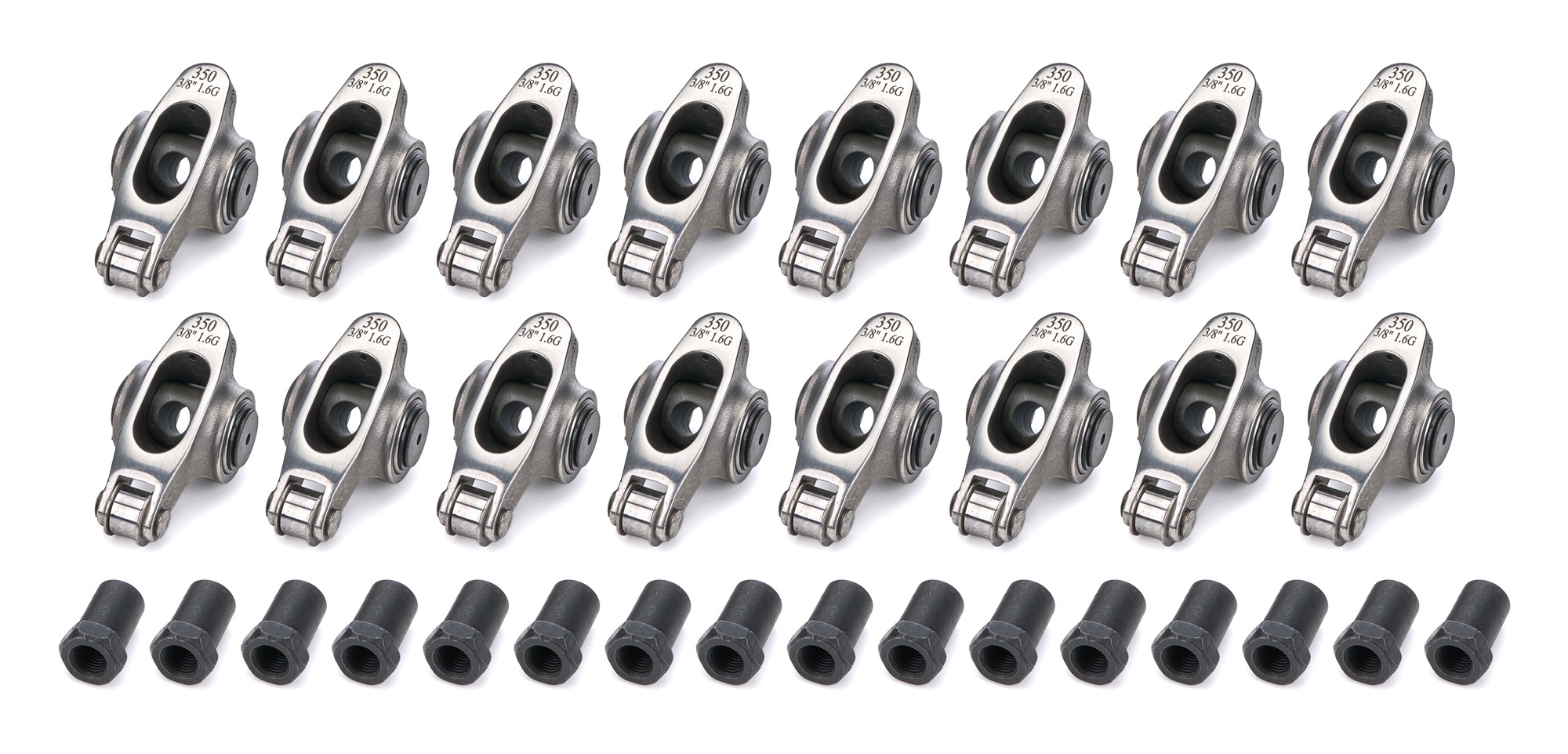 Rocker Arm – Platinum Pro Series – 3/8 in Stud Mount – 1.60 Ratio – Full Roller – Self-Align – Stainless – Natural – Small Block Chevy – Set of 16