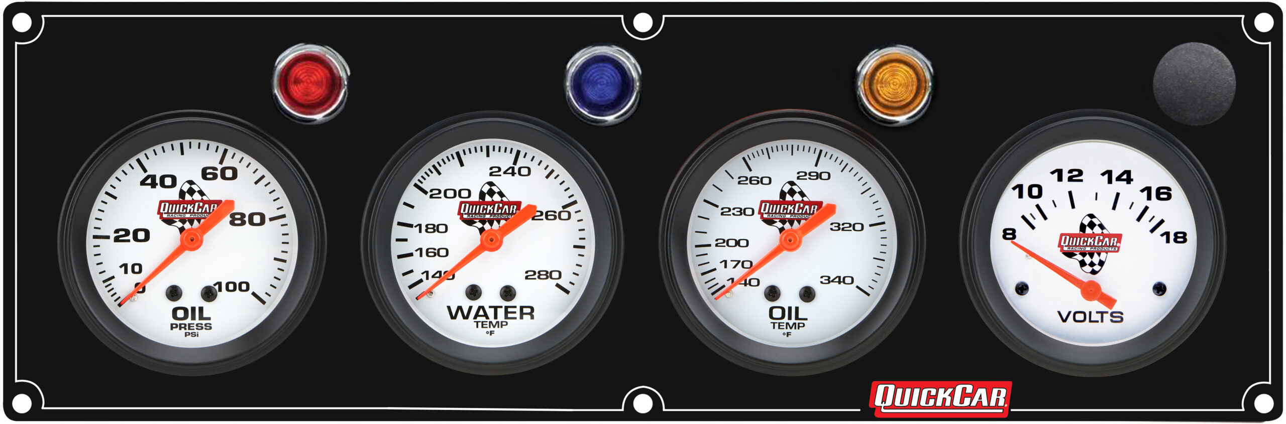 Gauge Panel Assembly – Legend Series – Plain Panel – Oil Pressure / Oil Temperature / Water Temperature / Voltmeter – 2-5/8 in Diameter – White Face – Warning Light – Kit