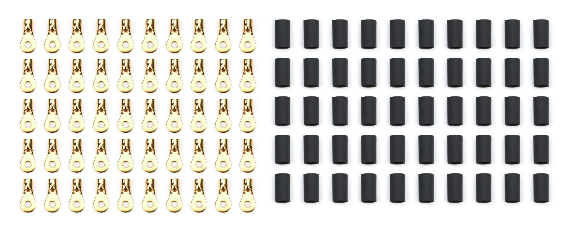 Ring Terminal – 12-10 Gauge Wire – Number 6 Hole – Heat Shrink Included – Copper – Set of 50