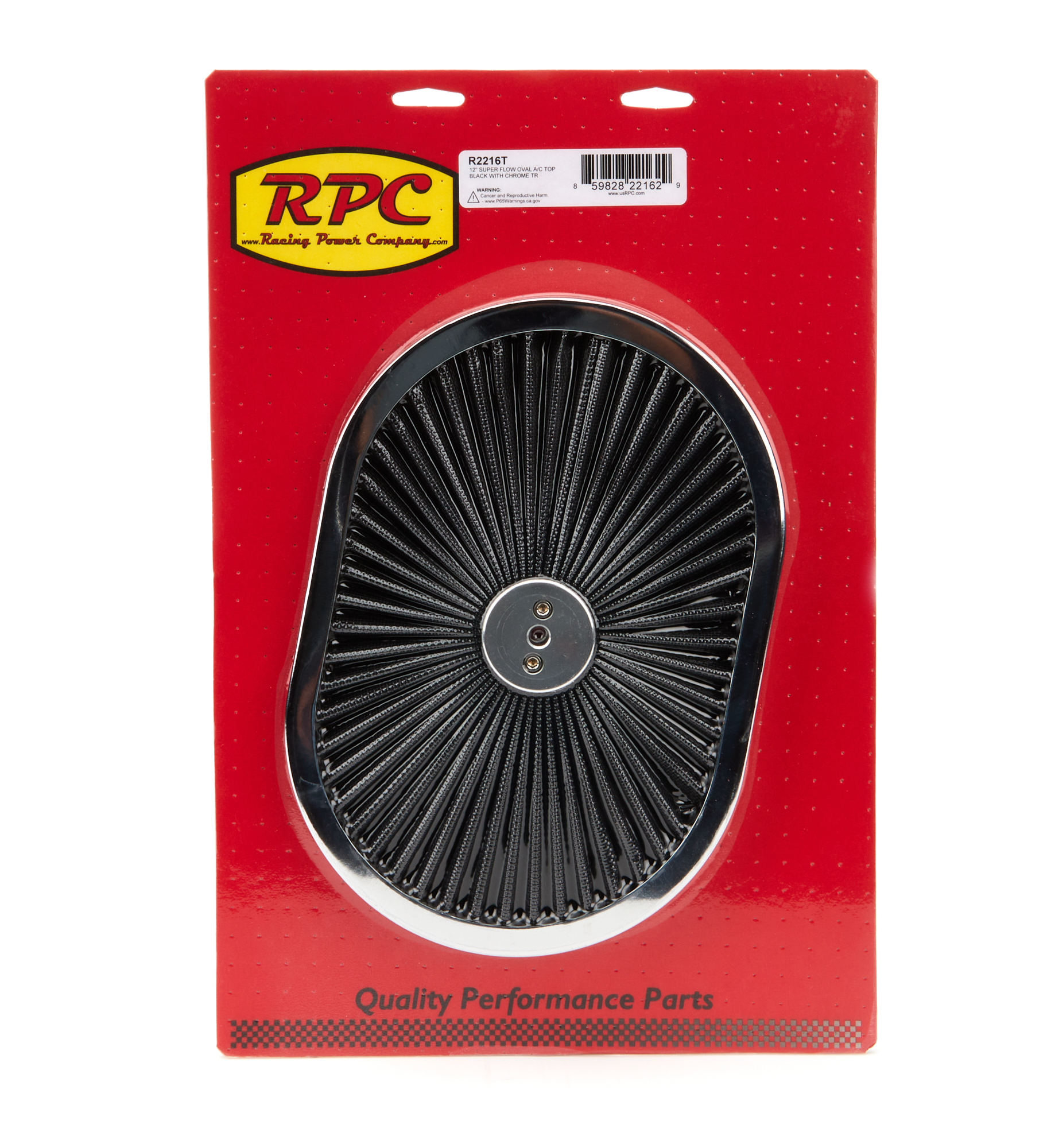 Air Cleaner Lid – Super Flow – 12 in Oval – Filtered – Black Filter – Steel – Chrome – Each