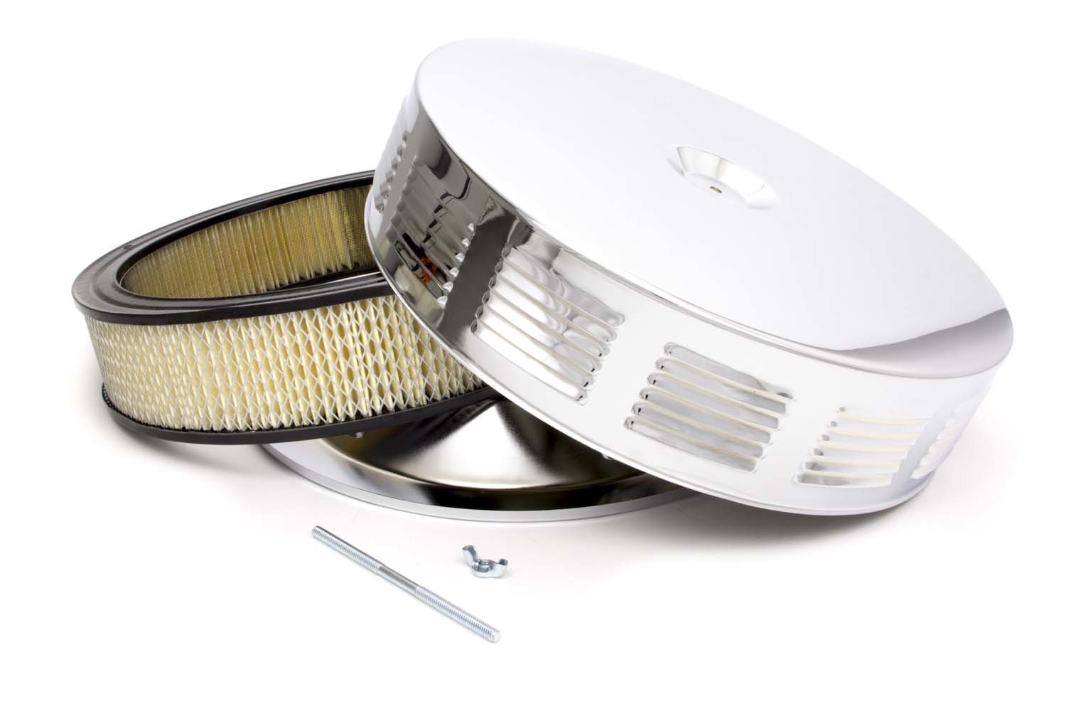 Air Cleaner Assembly – Louvered – 14 in Round – 3 in Element – 5-1/8 in Carb Flange – Drop Base – Steel – Chrome – Kit