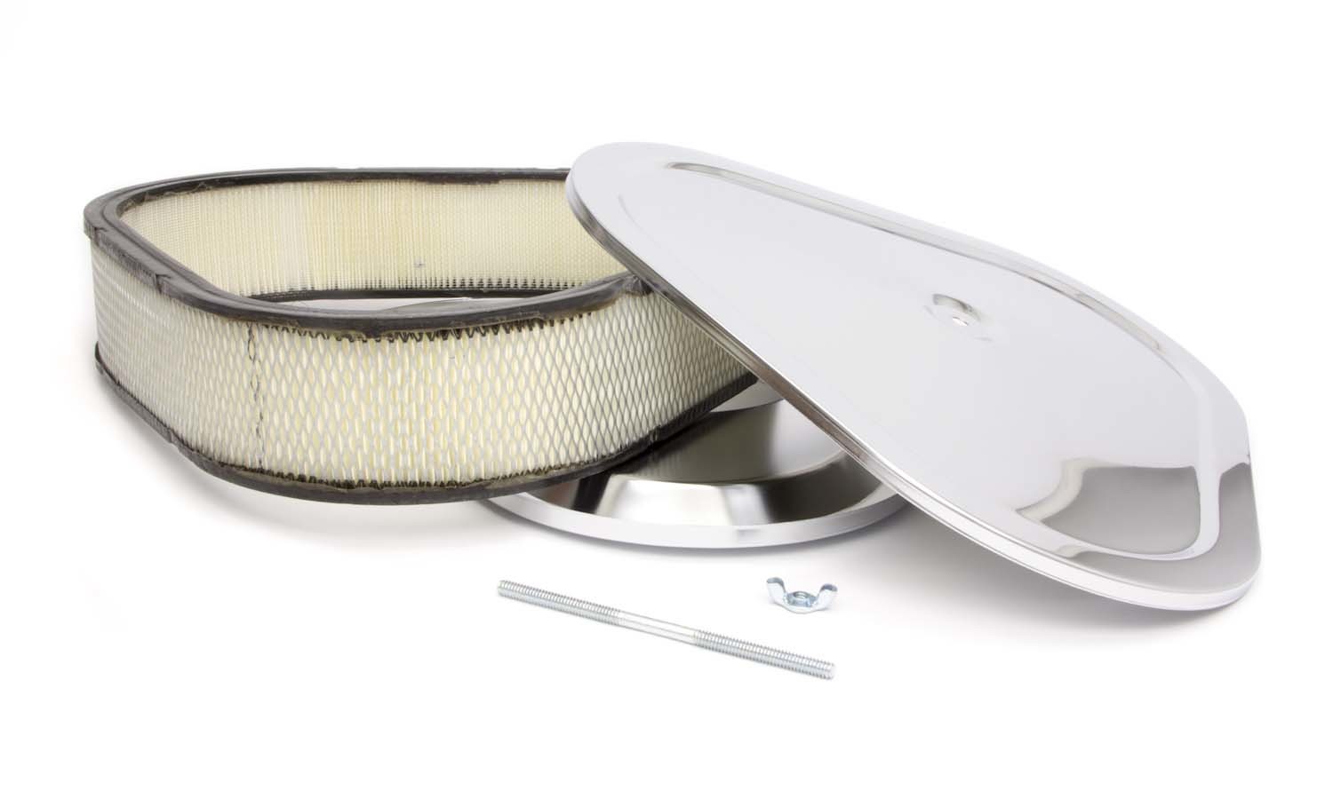 Air Cleaner Assembly – 14 in Triangle – 3 in Element – 5-1/8 in Carb Flange – Flat Base – Steel – Chrome – Kit