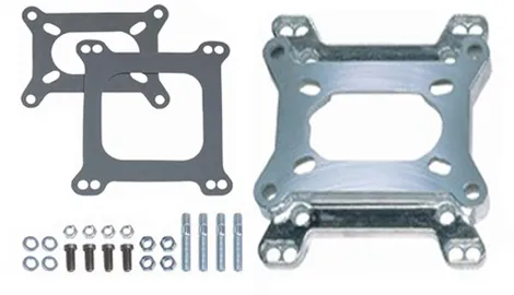 Carburetor Adapter – 1.688 in Thick – Open – Holley / Rochester 2-Barrel to Square Bore – Gaskets / Hardware Included – Steel – Natural – Each