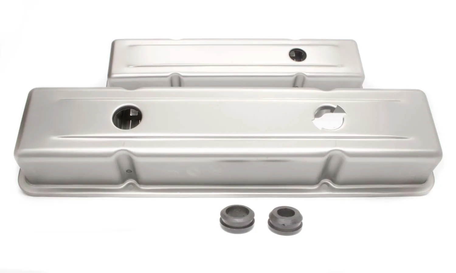 Valve Cover – Short – 2.625 in Height – Baffled – Breather Holes – Grommets Included – Steel – Natural – Small Block Chevy – Pair