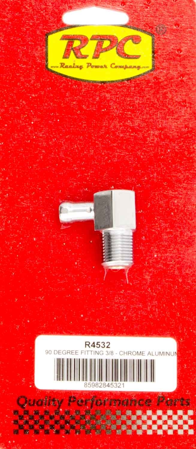 Fitting – Adapter – 90 Degree – 3/8 in NPT Male to 3/8 in Hose Barb – Aluminum – Chrome – Each