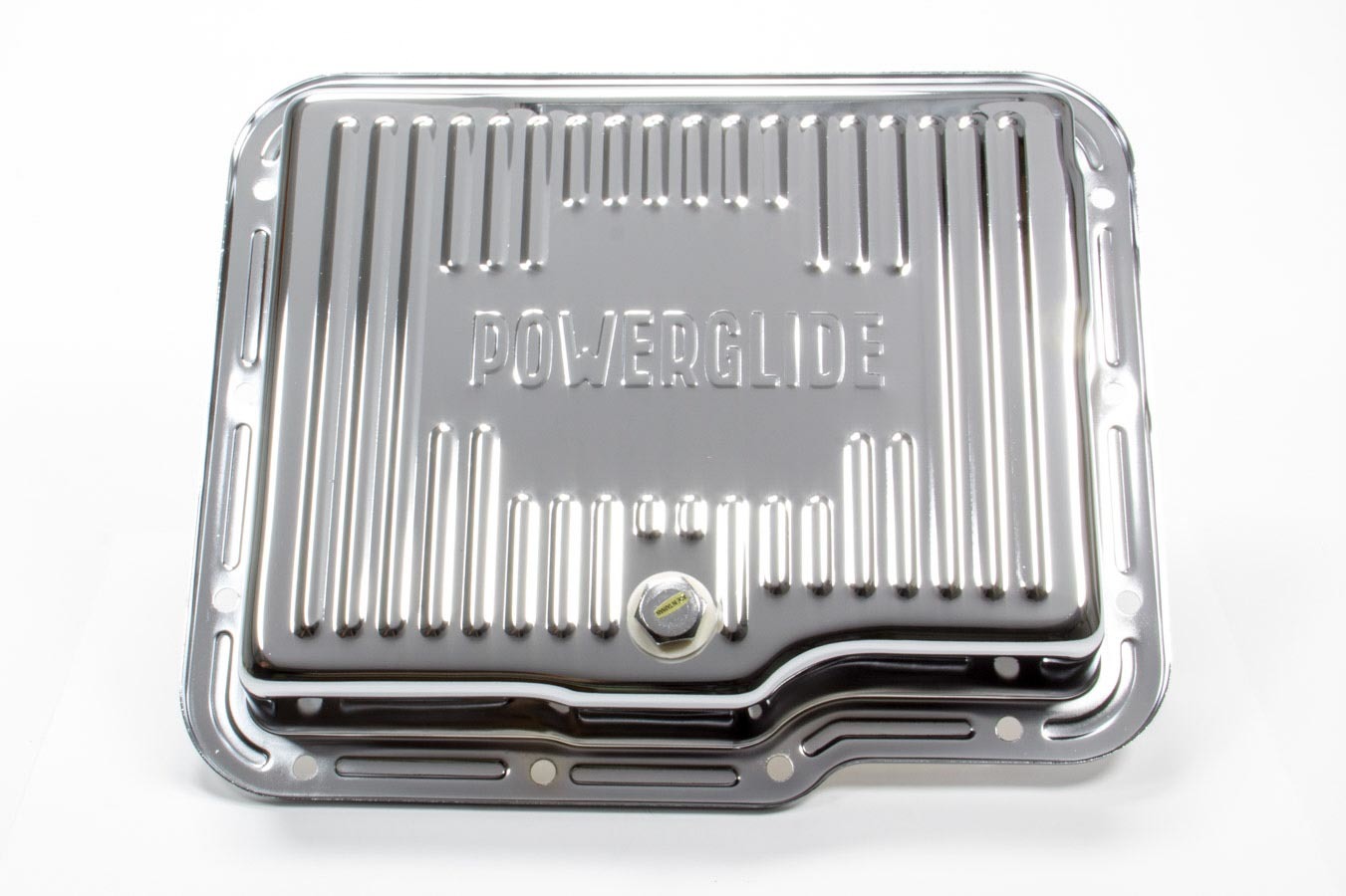 Transmission Pan – Stock Sump – Ribbed – Steel – Chrome – Powerglide – Each