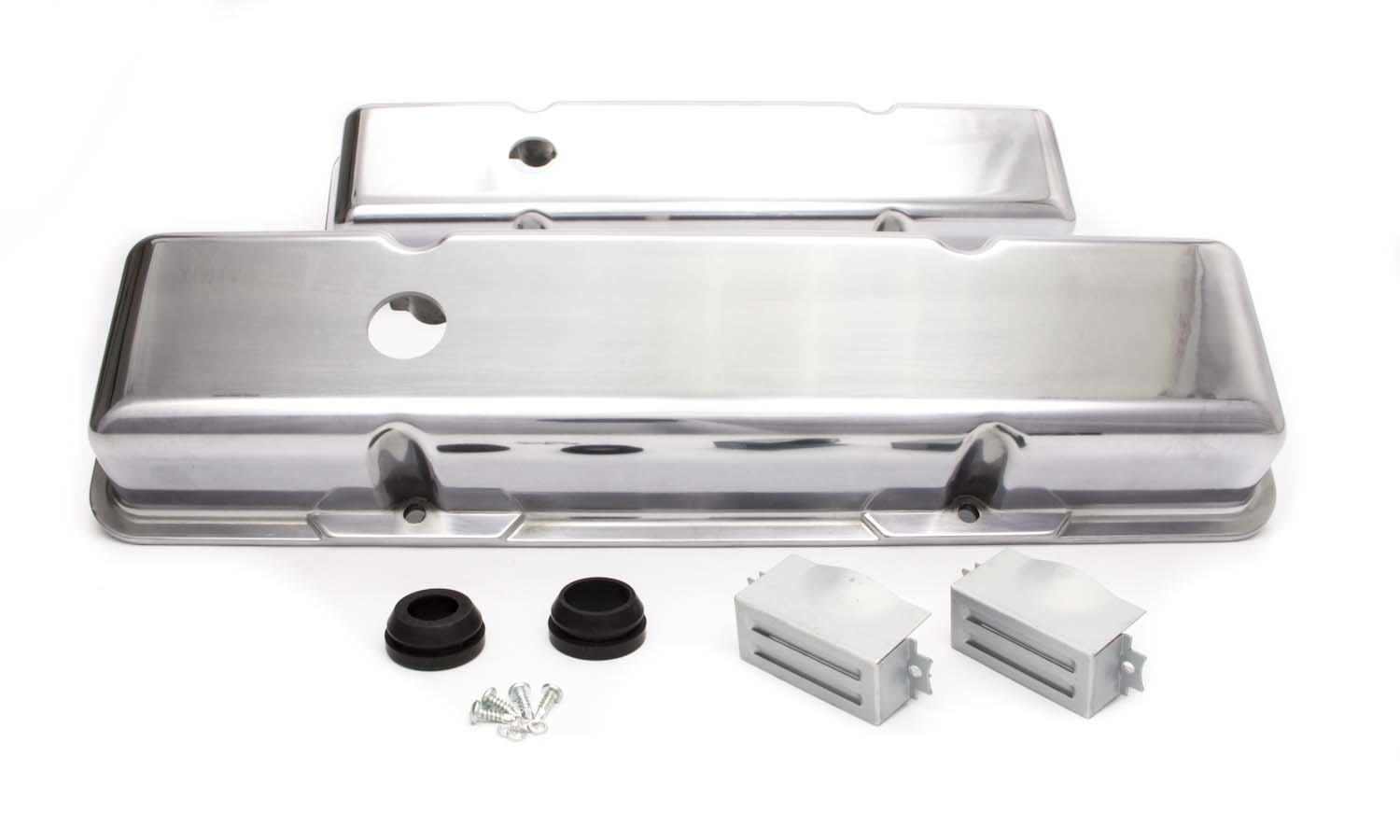 Valve Cover – Short – 2.563 in Height – Ball Milled – Baffled – Breather Holes – Grommets Included – Aluminum – Polished – Small Block Chevy – Pair