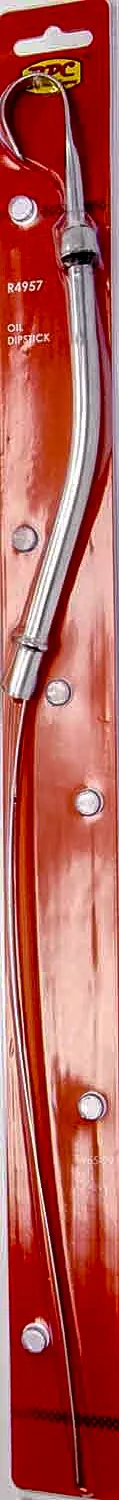 Engine Oil Dipstick – Solid Tube – Block Mount – 19 in Long – Steel – Chrome – Small Block Chevy – Each