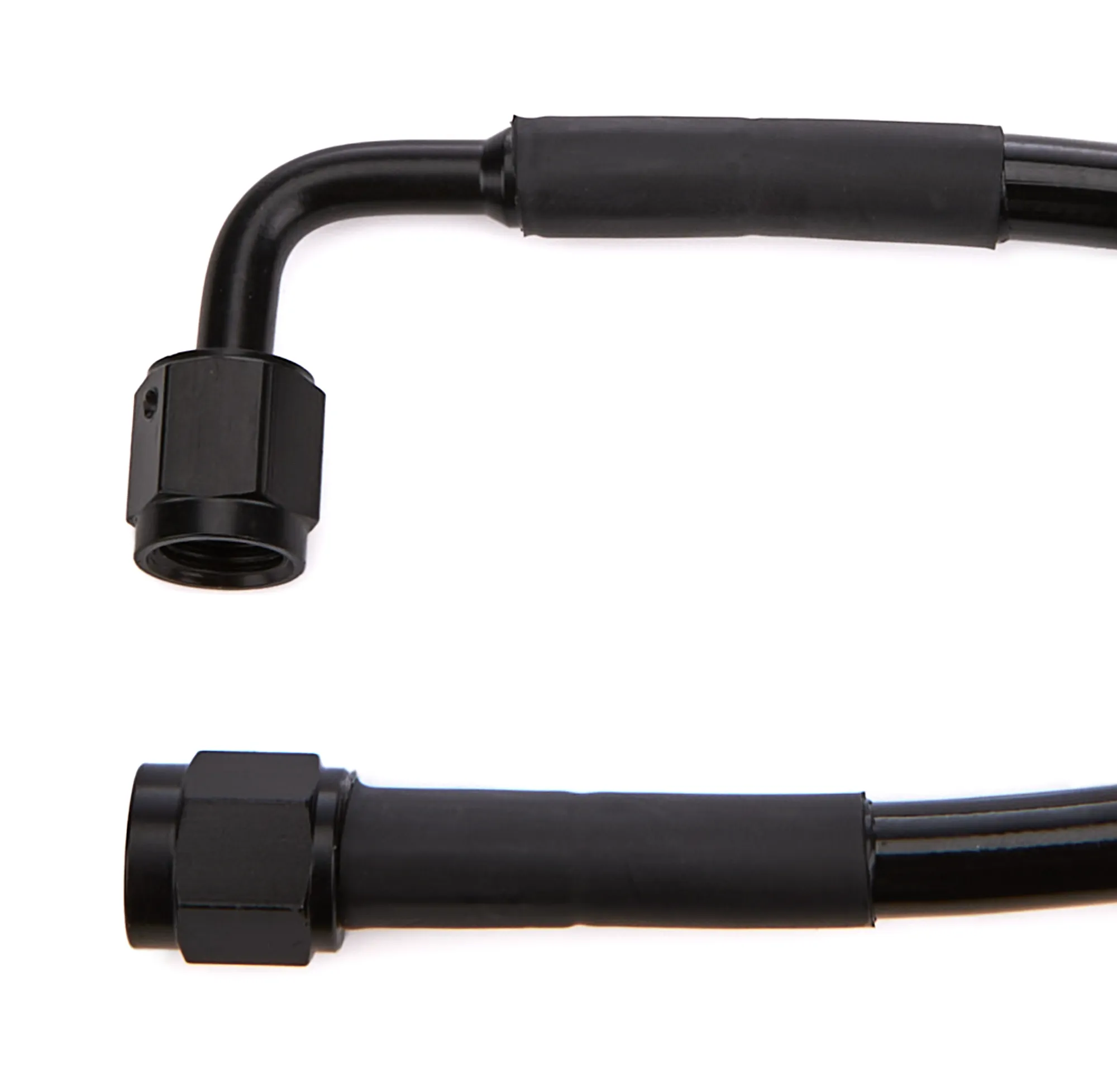 Brake Hose – 3392 Series – 18 in Long – 4 AN Hose – 4 AN Straight to 4 AN 90 Degree Female – Braided Stainless – PTFE Lined – Black – Each