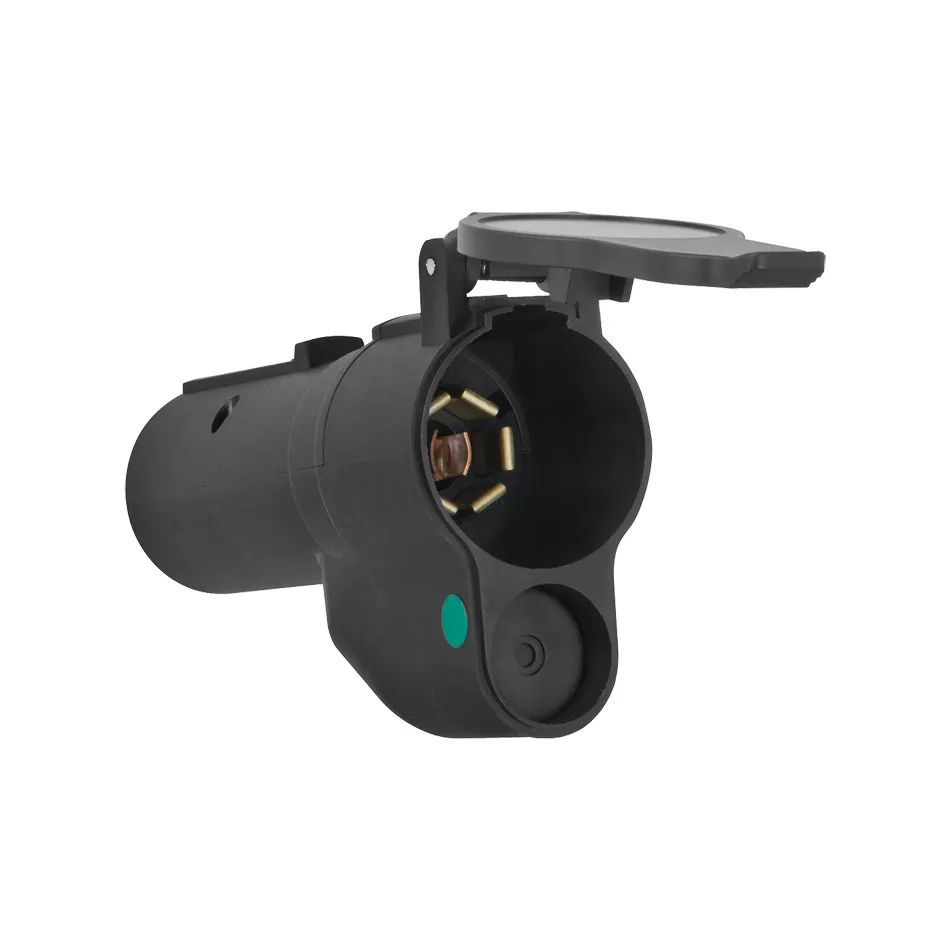Trailer Plug Adapter – 7-Way Male Plug to 7-Way Female Plug – LED Lamp Out By-Pass – Plastic – Black – Each