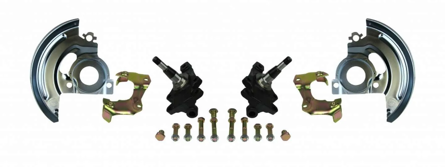 Spindle – 2 in Drop Spindle – Driver / Passenger Side – Backing Plates / Caliper Brackets – Iron – Natural – GM A-Body / F-Body / X-Body 1964-72 – Kit