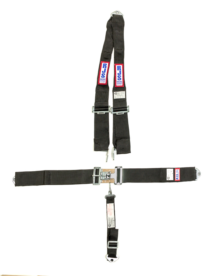 Harness – 5 Point – Latch and Link – SFI 16.1 – 64 in Length – Pull Down Adjust – Bolt-In – V-Type Harness – HANS Ready – Black – Kit