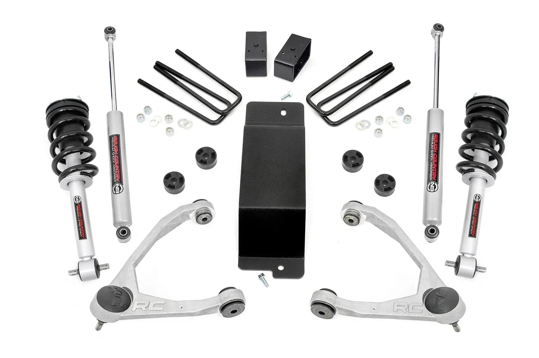 Suspension Lift Kit – 3.5 in Lift – Spacers / Control Arms / Ball Joints / Skid Plate / Spring Blocks / Shocks / Hardware – GM Fullsize Truck 2007-16 – Kit