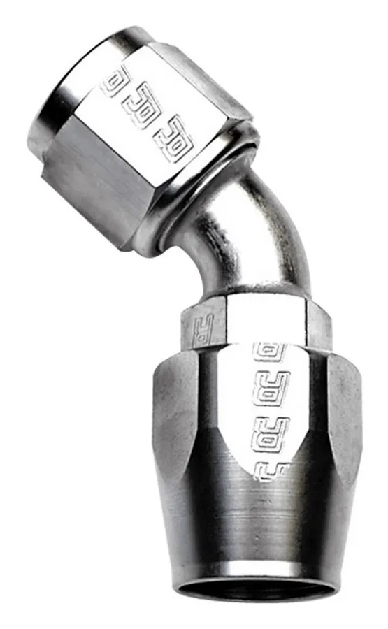 Fitting – Hose End – Full Flow – 45 Degree – 10 AN Hose to 10 AN Female – Aluminum – Nickel Anodized – Each