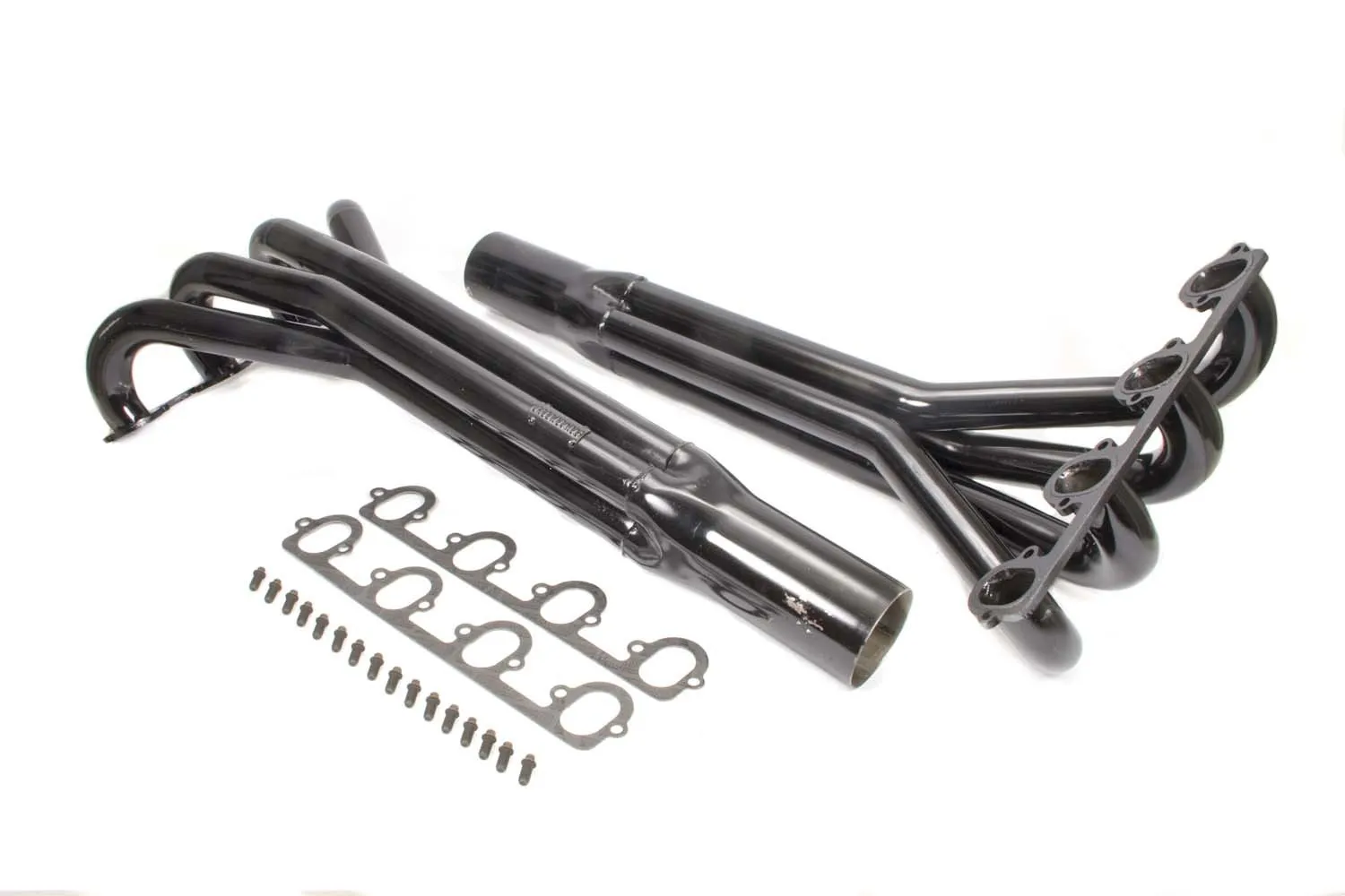 Headers – Truck / Tractor Pull – 2 in Primary – 4 in Collector – Gaskets / Hardware Included – Steel – Black Paint – Big Block Ford – Pair