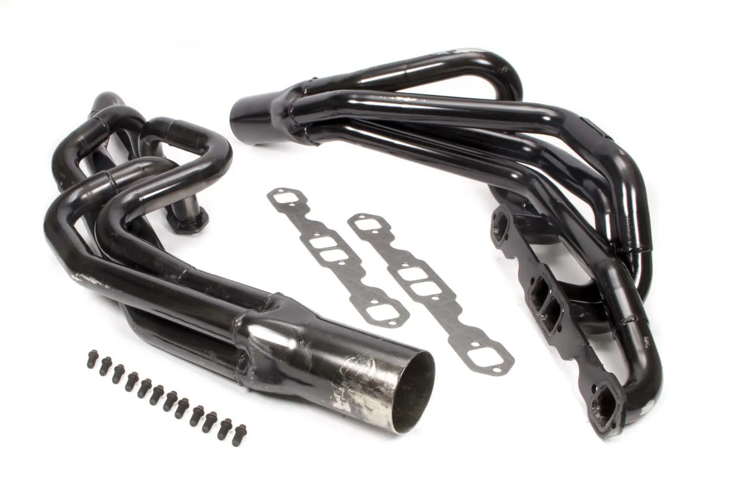 Headers – Conventional Crossover – 1.625 to 1.75 in Primary – 3.5 in Collector – Gaskets / Hardware Included – Steel – Black Paint – Small Block Chevy – Pair